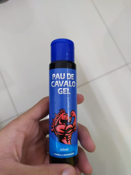 e afirma recomendar o uso do gel pau de cavalo como solução, mencionando resultados positivos e